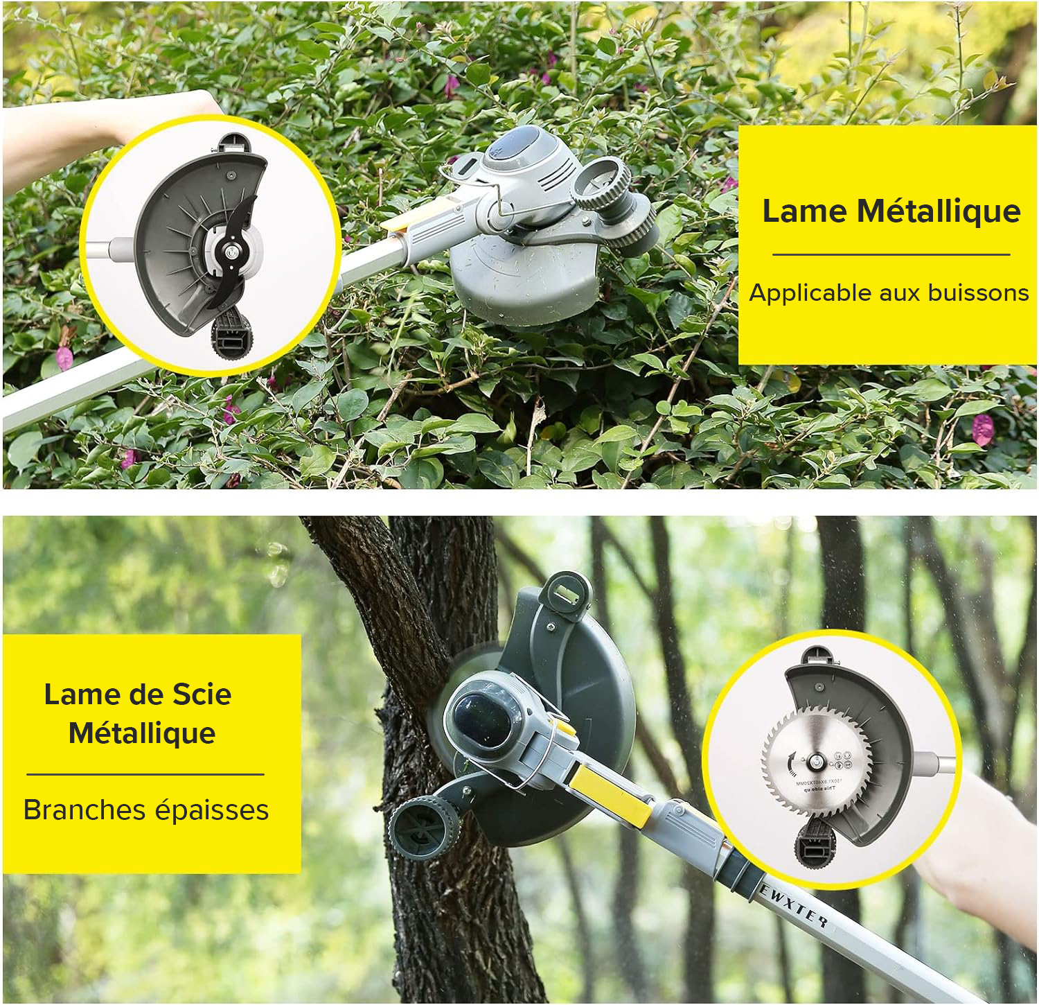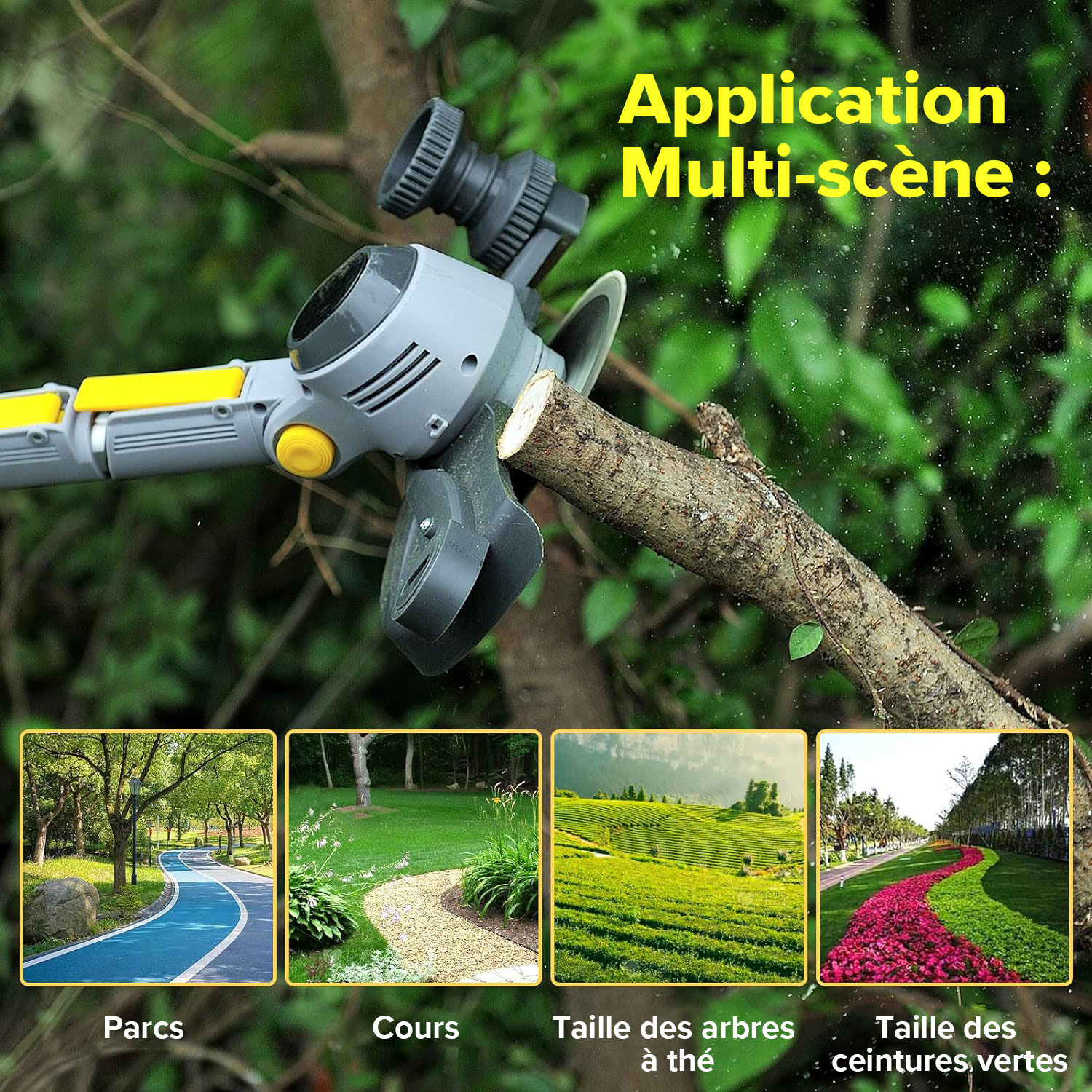 Débroussailleuse à lame métallique, contrôle sans fil, avec perche télescopique pour répondre à différents besoins. La débroussailleuse professionnelle peut résoudre une variété de désherbage, peut être utilisée dans des villas, des cours, des campus de pelouse, des parcs et d'autres zones, excellent choix pour la taille des jardins.