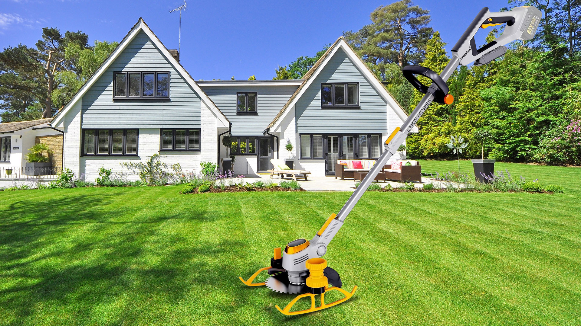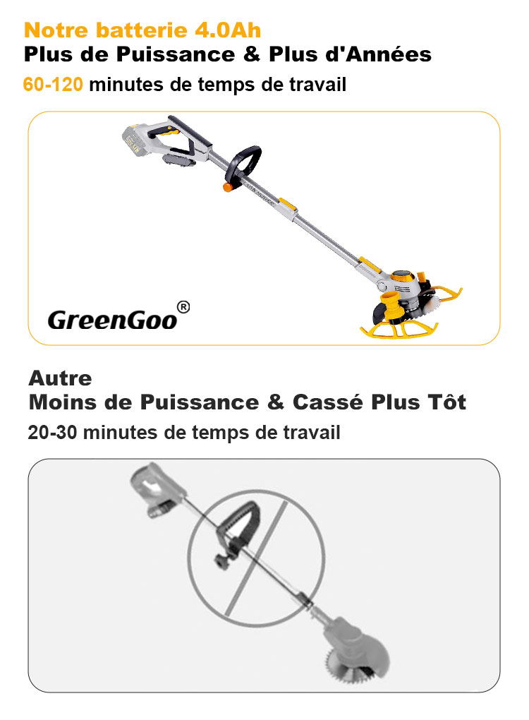 Après de nombreuses recherches et développements, GreenGoo a lancé avec succès le premier modèle d'outil de pelouse sans fil 3-en-1 Débroussailleuse/Rotofil/Coupe-bordure, et a ajouté une roue de réservoir coulissante basée sur l'original, vous permettant de ne pas avoir à vous pencher pour tondre l'herbe et d'utiliser une seule main pour l'opération, facilitant ainsi le jardinage.